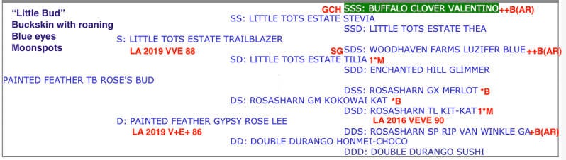 Buckskin, Blue eyes, Moonspots, Polled