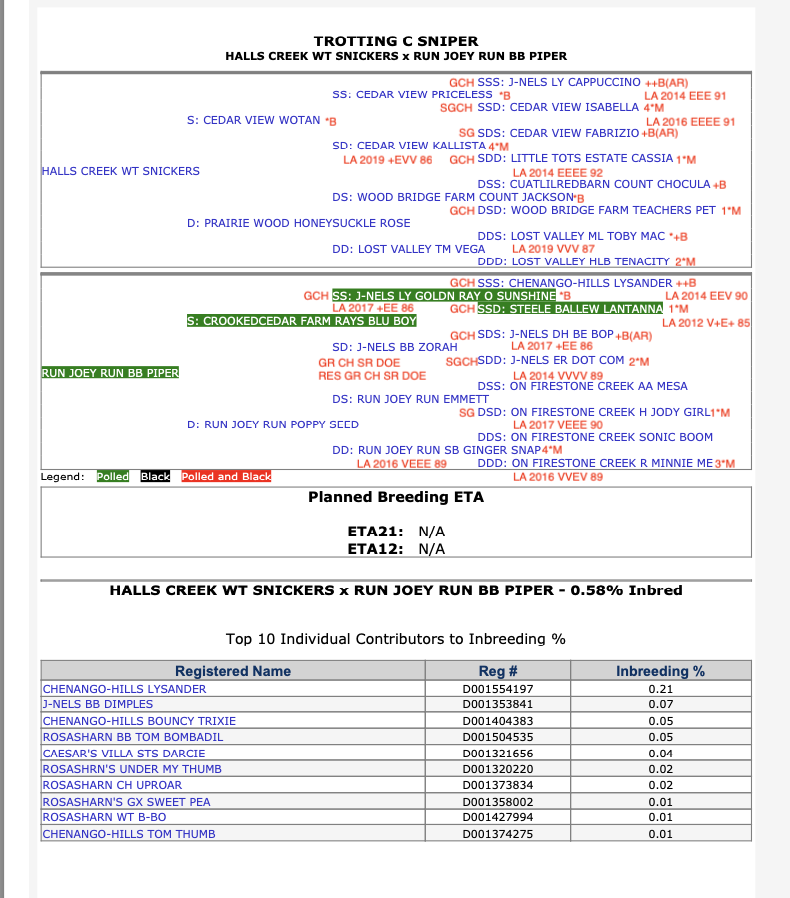 Sire: Hall Creek WT Snickers